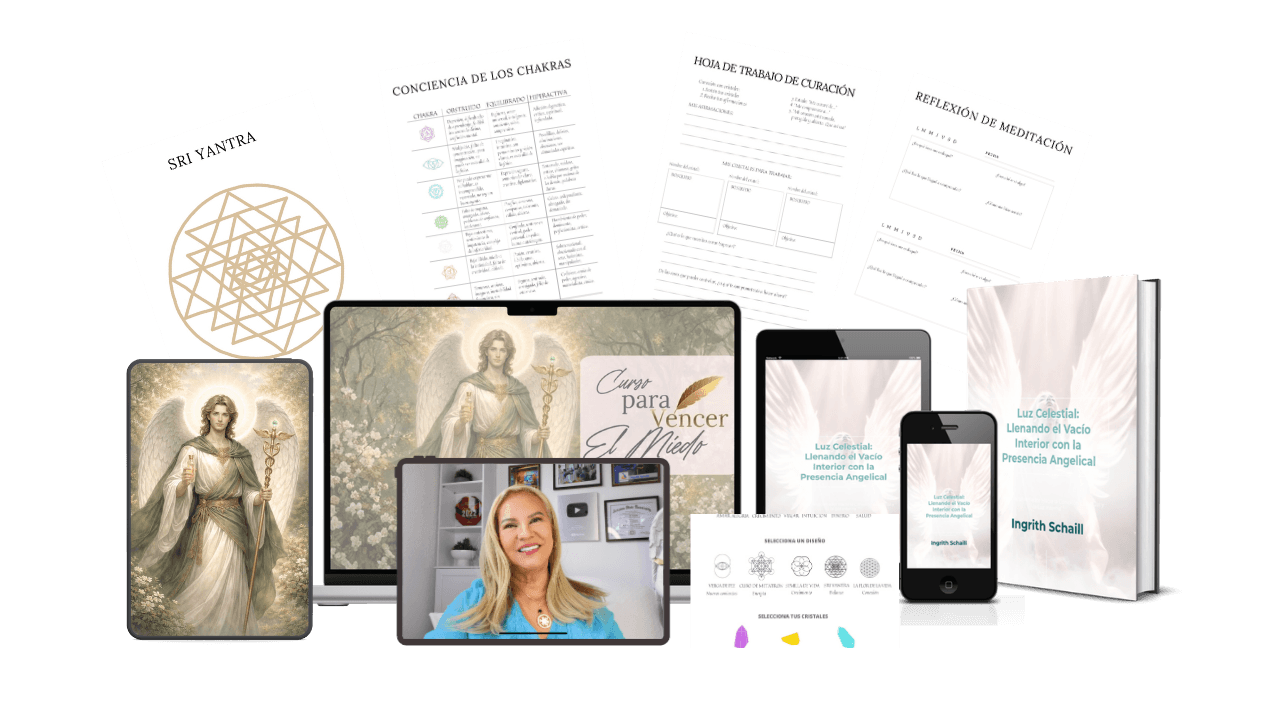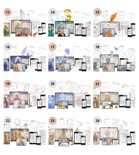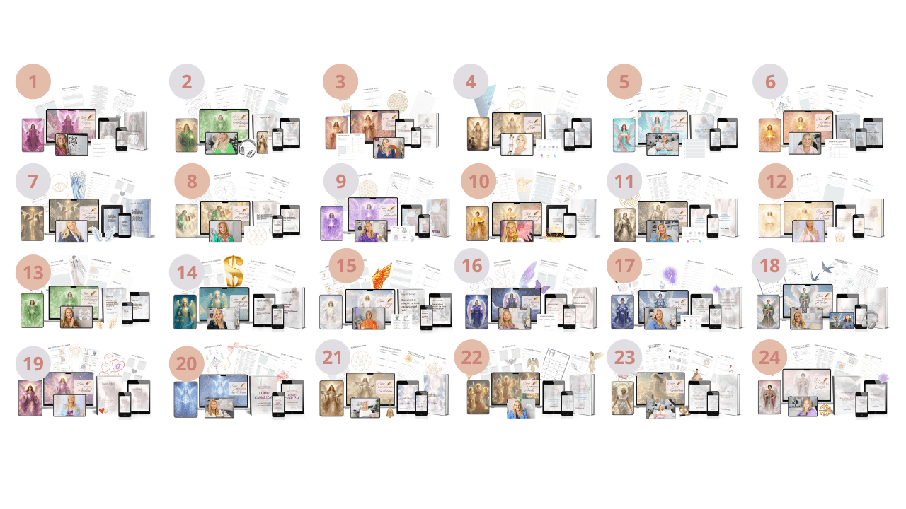 Esta colección de 24 cursos incluye algunas de las guías angelicales más completas que he creado para acompañar a mujeres en momentos reales de su vida: decisiones difíciles, bloqueos emocionales, problemas familiares, salud, propósito y estabilidad interior.